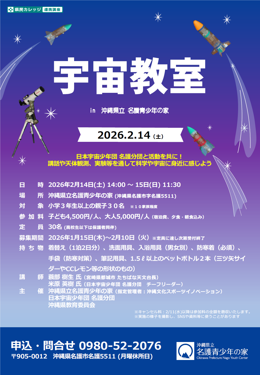 2026年2月14日(土)~2月15日(日)令和7年度宇宙教室
